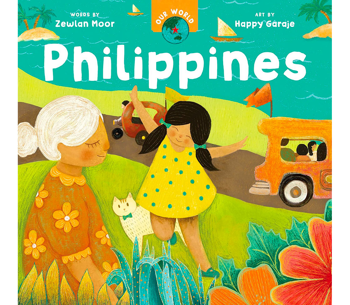 Joining the Our World series, this board book with endnotes about the Philippines was created by a Filipino author and illustrator team. Magandang umaga! Come along for a day in the Philippines. Ride the unicorn jeepney, stop by the sari sari, and cool off with sweet halo halo. Filipino author Moor and illustrator team Happy Garaje draw on their lived experiences to create this beautiful board book, which includes educational endnotes, as part of the Our World series for very young readers. AGES: 0 to 4